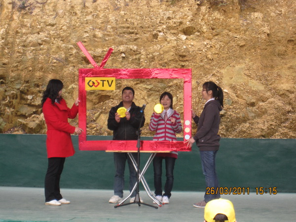 2011年3月27日,我司组织了2010年度优秀员工和QC小组成员到江门恩平泉林山庄进行了颁奖兼联谊活动,上午我们进行了CS野战、大脚八等拓展活动,下午是我们2010年度优秀员工、质量先进个人、优秀班组和优秀班组长的颁奖活动,上年度共涌现出23名优秀员工,13名质量先进个人,3个优秀班组和优秀班组长,他们用优异的表现获得了公司的肯定,公司给予他们物质和精神上的奖励。颁奖过程中穿插中公司自己组织的文娱活动,活动形式丰富多彩,有合唱、对唱、游戏、广告、小品、舞蹈等,虽然我们只有短短一周时间的准备时间,但是他们都很努力去排练,节目演出效果还不错,公司领导也积极参与到节目中。
